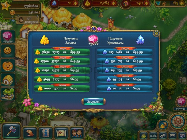 Наверняка из нашего обзора вы уже поняли, что сама игра является бесплатной, а для получения дополнительных ресурсов за реальные деньги необходимо приобрести некоторое количество кристаллов, которые в дальнейшем вы сможете потратить на эти ресурсы, постройку различных украшений, всевозможные бонусы и т.д.