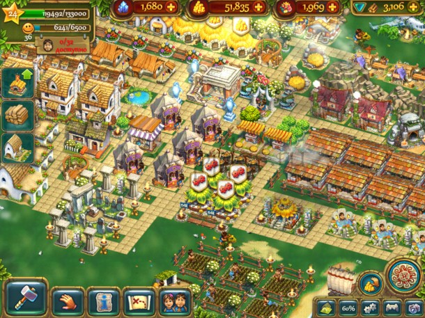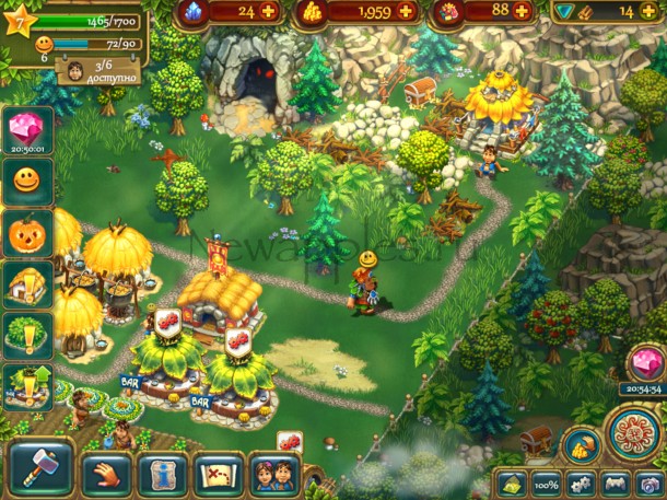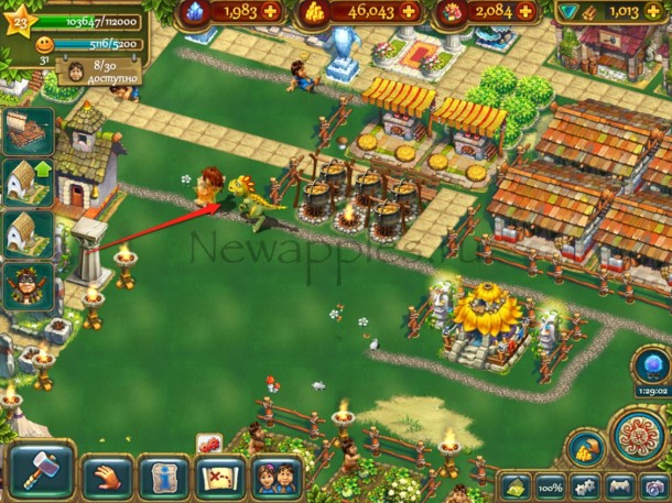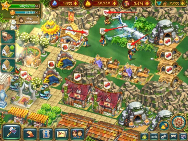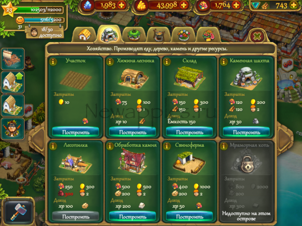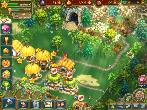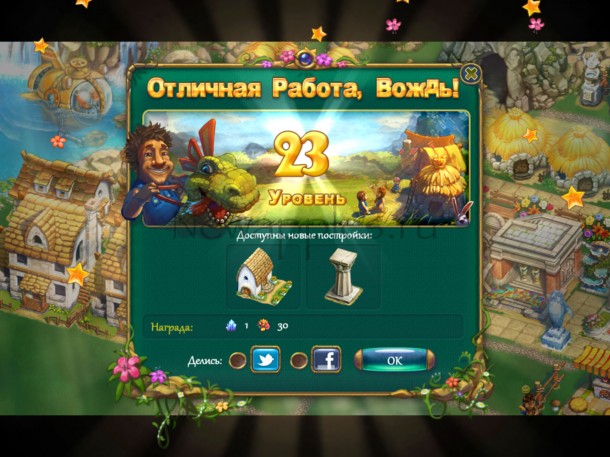 По мере прохождения игры, у вас повышается уровень опыта и после получения каждого нового уровня вы будете вознаграждены некоторым количеством еды, возможностью постройки новых зданий, а также кристаллами, которые можно потратить на покупку нужных вам ресурсов.