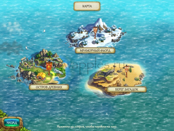 Сейчас я не буду вам рассказывать о том, что вы увидите на этом заснеженном острове, отмечу лишь, что там вас ждёт ещё больше интересных приключений. А вот третий остров — Берег Загадок — встретит вас тропическим климатом.