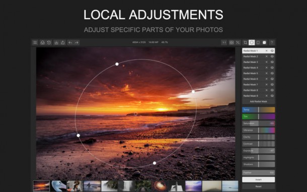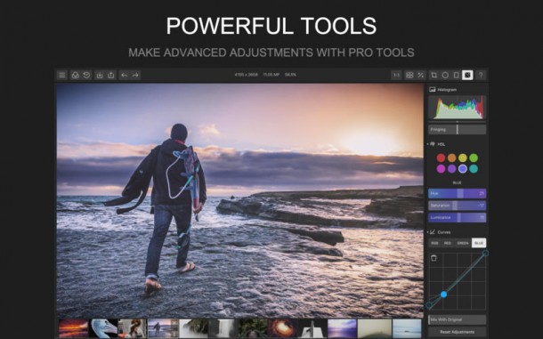 Polarr Photo Editor ($19.99 → $0.99, 6,0 Мб): Довольно неплохой профессиональный редактор фотографий для компьютеров Mac. Polarr Photo Editor поддерживает JPEG, PNG с возможностью экспорта прозрачных изображений в формат PNG и большинство изображений в формате RAW до 42MP. С помощью этого фоторедактора вы сможете регулировать насыщенность цвета, яркость, контрастность, чёткость, корректировать зернистость, HSL-каналы, высветлять/тонировать тени, наносить водяные знаки и многое другое.
