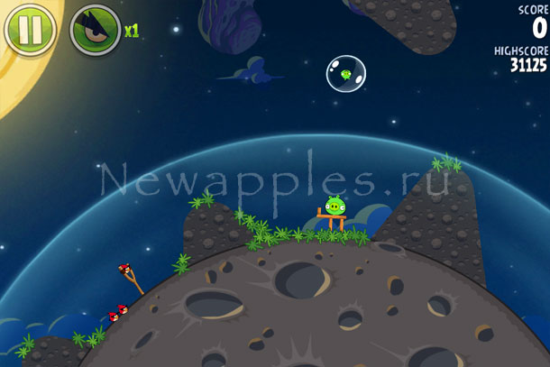 Как видно из названия, действие Angry Birds Space происходит в космосе, т.е. в невесомости, а это значит, что полностью изменилась физика игры и теперь во время «запуска» птиц вам придётся учитывать законы гравитации и силу притяжения.