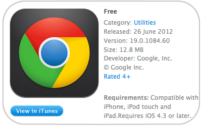 Chrome является универсальным приложением и может быть установлено как на iPhone/iPod Touch, так и на iPad с прошивкой iOS 4.3 и выше. Скачать Chrome можно совершенно бесплатно из App Store по нижеприведённой ссылке.