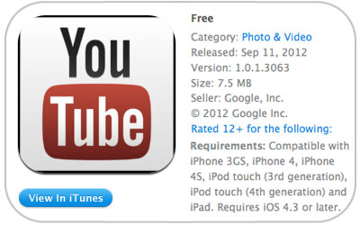 Около месяца назад, после выхода четвёртой бета-версии iOS 6 стало известно, что компания Apple не будет включать в финальную версию своей новой прошивки приложение YouTube, которое присутствовало на iOS устройствах с 2007 года.