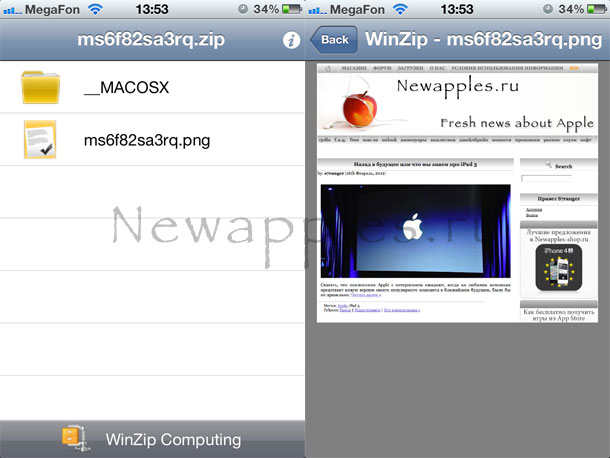 Как видите, с помощью WinZip для iOS вы не сможете редактировать содержимое архива и создавать свои собственные архивы, однако, она может стать отличным помощником, с помощью которого вы сможете просмотреть содержимое полученного Zip-файла непосредственно на своём iPhone или iPad.