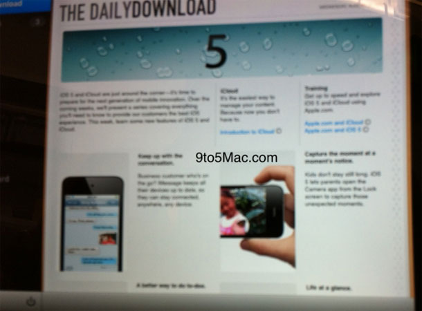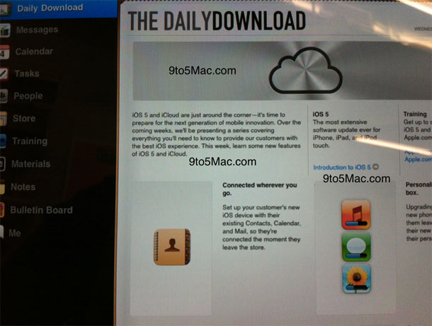 По данным ресурса 9to5mac, полученным из источника внутри Apple Store, компания Apple начала полномасштабную подготовку сотрудников своих розничных магазинов к запуску облачного сервиса iCloud и будущей прошивки iOS 5.