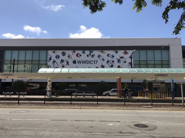 Традиционно, за несколько дней до начала своей очередной презентации или конференции компания Apple начинает украшать здание, в котором пройдёт это мероприятие. Так произошло и на этот раз — накануне Apple приступила к оформлению фасада конференц-центра имени МакЭнери и его окрестностей баннерами и флагами с логотипами WWDC 2017. Что происходит внутри здания на данный момент неизвестно, но, вероятнее всего, рабочие уже приступили к украшению его помещений, в которых инженеры Apple дадут мастер-классы разработчикам приложений и ответят на их вопросы.