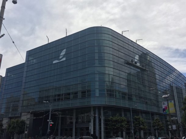 По сложившейся традиции, за несколько дней до начала своей очередной презентации или конференции компания Apple начинает украшать здание, в котором пройдёт это мероприятие. Вчера в сети появились первые фотографии c 99 Grove Street и 747 Howard Street, где расположены комплекс Bill Graham Civic Auditorium и выставочный центр Moscone West. На этих фотографиях пока что видны только наклеенные на их фасады фирменные логотипы Apple с надкушенным яблоком и флаги компании.