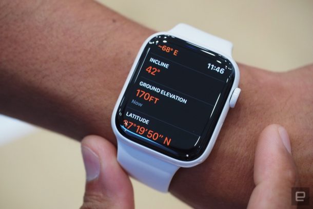 Благодаря новому приложению «Компас» в Apple Watch Series 5 можно определить направление движения, угол уклона, широту и долготу, а также высоту над уровнем моря. Пользователи даже могут добавить на циферблат одно из трёх расширений для компаса, чтобы определять направление, взглянув на часы.