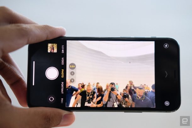 Обновленный интерфейс камеры позволяет более эффективно взаимодействовать с с системой трёх камер и дисплеем, занимающим всю переднюю поверхность корпуса. С его помощью пользователи видят область за пределами кадра — и могут снять её. А функция QuickTake впервые позволяет легко начать запись видео, не переключаясь из режима фотосъёмки, а просто удерживая кнопку затвора.
