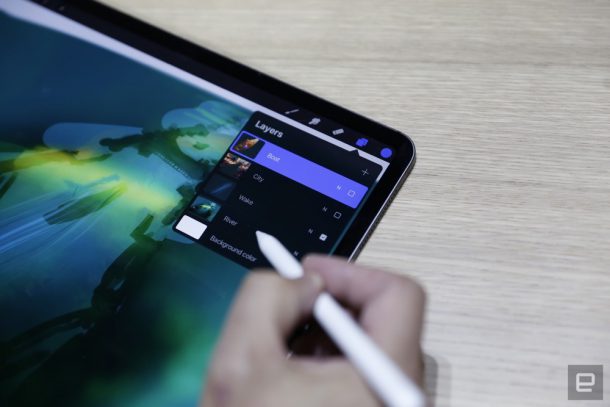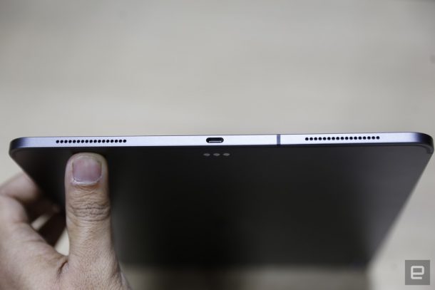 Наконец, последней новинкой, показанной на презентации «There’s more in the making», стал новый iPad Pro с экраном 11 и 12,9 дюйма. Обе модели получили дисплей Liquid Retina с разрешением 2388×1668 пикселей (264 пикселя/дюйм), подсветкой LED и технологией IPS, а также процессор A12X Bionic с 64‑битной архитектурой со встроенным сопроцессором движения М12 и системой Neural Engine, камеры 12 Мп и 7 Мп, и пять микрофонов для звонков, записи видео и аудио.
