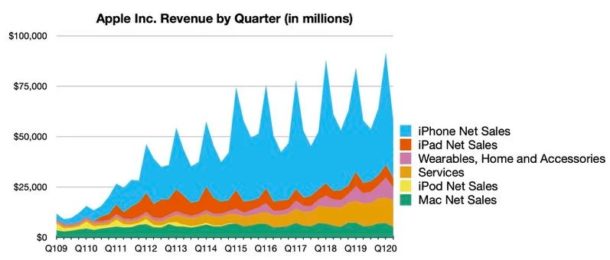 В четверг, 30 апреля, глава Apple Тим Кук и её финансовый директор Лука Маэстри объявили финансовые показатели компании за второй финансовый квартал 2020 года, который соответствует первому календарному кварталу 2020 года. Руководство Apple сообщило о доходе компании за предыдущие три месяца, который составил $58,3 млрд. и чистой квартальной прибыли в размере $11,2 млрд. или $2,55 за акцию, по сравнению с доходом $58,0 млрд. и чистой квартальной прибылью в размере $11,6 млрд. или $2,46 за акцию, за аналогичный квартал прошлого года.