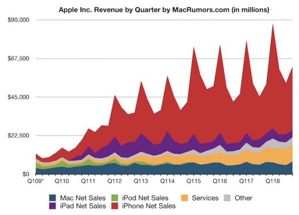 В четверг, 1 ноября, глава Apple Тим Кук и её финансовый директор Лука Маэстри объявили финансовые показатели компании за четвёртый финансовый квартал 2018 года, который соответствует третьему календарному кварталу 2018 года. Руководство Apple сообщило о доходе компании за предыдущие три месяца, который составил $62,9 млрд. и чистой квартальной прибыли в размере $14,1 млрд. или $2,91 за акцию, по сравнению с доходом $52,6 млрд. и чистой квартальной прибылью в размере $10,7 млрд. или $2,07 за акцию, за аналогичный квартал прошлого года.