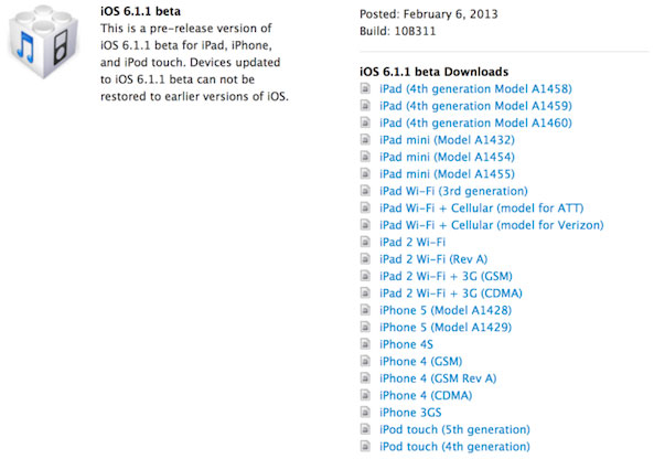 Apple выпустила iOS 6.1.1 Beta 1 для разработчиков