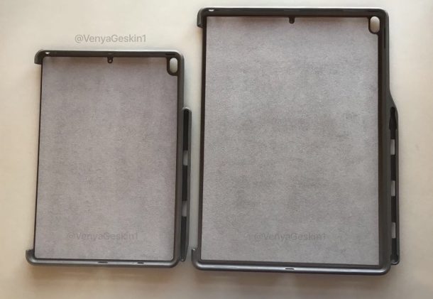 В понедельник латвийский блогер Вениамин Гескин опубликовал несколько фотографий чехлов, предназначенных для предстоящего 10,5-дюймового планшета и iPad Pro нового поколения с диагональю 12,9 дюймов. На первой из них видны отверстия для микрофона, расположенные в верхней части задней панели, тогда как у текущих моделей iPad Pro они находятся сбоку над кнопками регулировки громкости.
