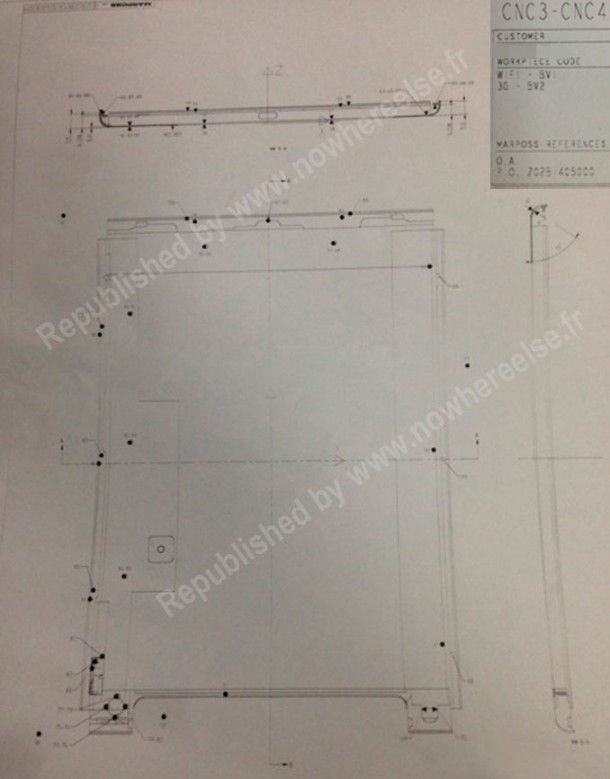 Около двух недель назад в сети уже появлялись рабочие чертежи iPhone 5S и бюджетного iPhone, а сегодня на известном своими достоверными источниками сайте Nowhereelse.fr были опубликованы чертежи пятого поколения iPad от Apple.