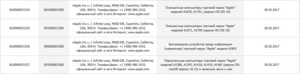 Сегодня в реестре Евразийской экономической комиссии (ЕЭК), который периодически пополняется нотификациями о новых устройствах, сертифицированных для использования в том числе в России, появилась информация о прохождении сертификации новых продуктов Apple. В частности, «Единый реестр нотификаций о характеристиках шифровальных (криптографических) средств и товаров, их содержащих» пополнился записями о пяти ноутбуках с macOS 10.12, четырёх планшетах с iOS 10 и беспроводной клавиатуре Apple с неизвестными на данный момент номерами моделей.