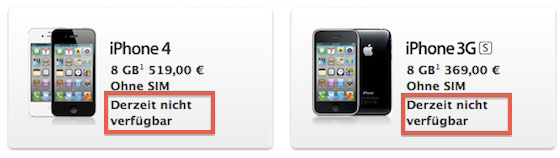 iPhone 4 и iPhone 3GS удалены из немецкого интернет-магазина компании Apple