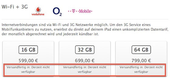 iPad 2 Wi-Fi + 3G удалены из немецкого интернет-магазина компании Apple