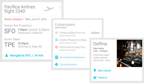 Если владелец смартфона прилетел в другой город, Google Now отобразит местную погоду, рестораны и кафе, которые стоит посетить, а также отследит информацию о рейсе вылета.