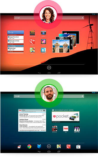 Главной её особенностью стала возможность создания нескольких профилей (учётных записей), благодаря чему использовать устройство теперь могут сразу несколько пользователей. Переключение между ними происходит с экрана блокировки.