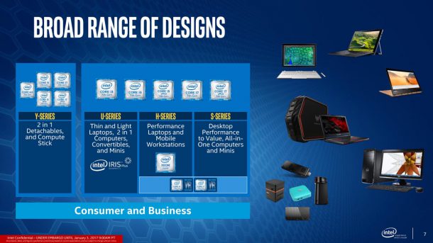 Две модели процессоров этого семейства — Kaby Lake-Y и Kaby Lake-U — были представлены компанией Intel ещё в конце августа прошлого года. Как тогда отмечалось, маломощные Kaby Lake-Y могли бы использоваться производителями в планшетах и трансформируемых ноутбуках, а серия Kaby Lake-U — в ультрабуках. Анонсированные во вторник чипы Kaby Lake S-series, Kaby Lake H-series и Kaby Lake T-series в первую очередь предназначены для более мощных ноутбуков и настольных компьютеров.