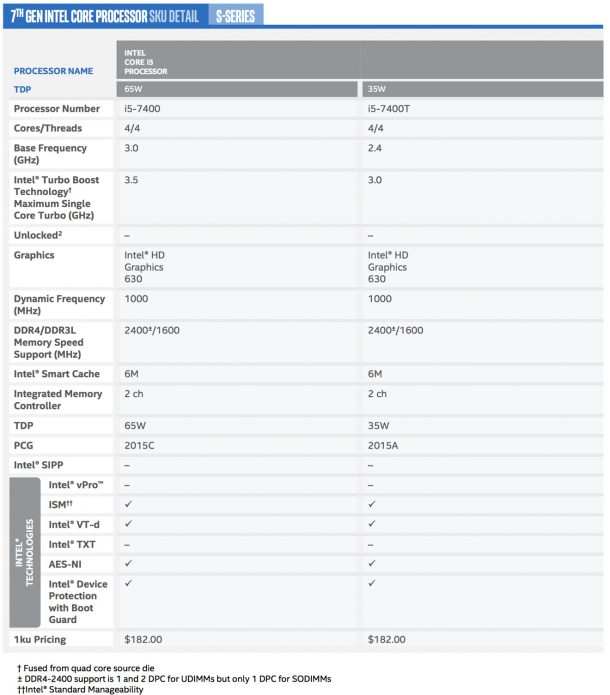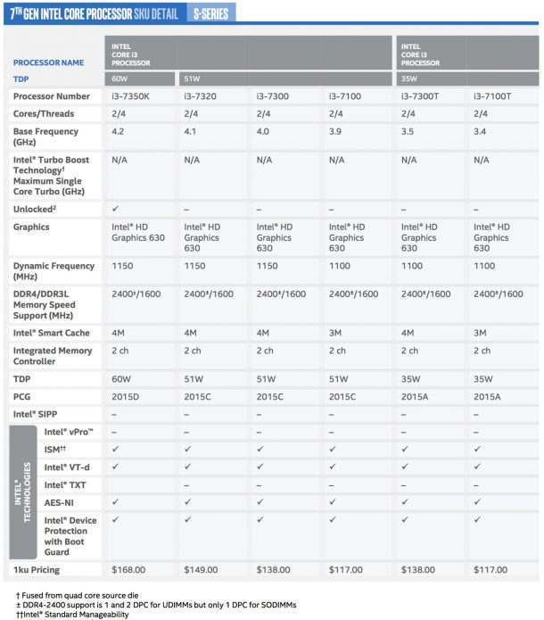 Спецификации всех чипов серии Kaby Lake-S смотрите в таблицах.