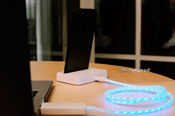 А вот кабель Lightning to USB от iPhone5mod отличается от аналогичного «яблочного» аксессуара светящимся шнуром.