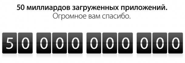Только что компания Apple опубликовала на своём сайте официальный пресс-релиз, в котором сообщила о том, что количество загрузок в её магазине приложений App Store перевалило за 50 миллиардов.