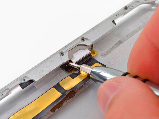 Разъем Lightning прикручен к задней панели двумя скрытыми винтами.