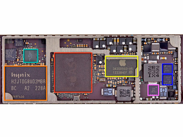 Голубой — Apple 338S1116. Такой же присутствует в iPod Touch 5, а похожий на него — Apple 338S1117, можно найти в iPhone 5