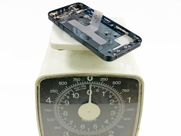 Задняя панель iPhone 5 весит немного больше, чем стеклянная задняя панель iPhone 4S.