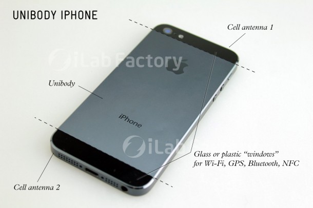 Учитывая, что, помимо GPRS антенны, в новом iPhone будут присутствовать Wi-Fi, GPS, Bluetooth, и, возможно, NFC антенны, компании Apple пришлось отказаться от использования цельной металлической задней панели и расположить в его верхней и нижней части вставки из другого, наименее экранирующего материала, такого как стекло или пластик.