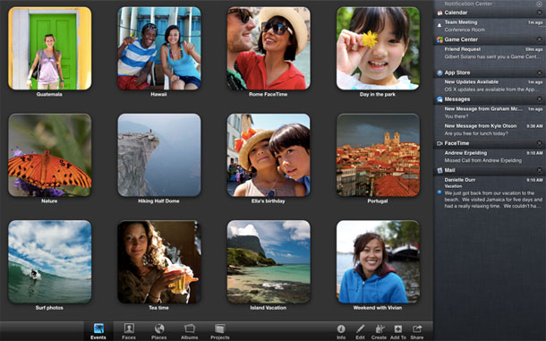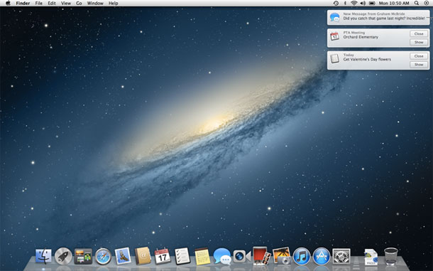 Теперь о всех событиях вы сможете узнать с помощью Notification Center. Практически всегда на вашем компьютере происходит какое-то событие — приходит письмо на электронную почту, появляется оповещение в календаре, приходит какое-то сообщение и многое другое. Notification Center позволяет легко узнавать об этих событиях, без необходимости заходить во все эти приложения.