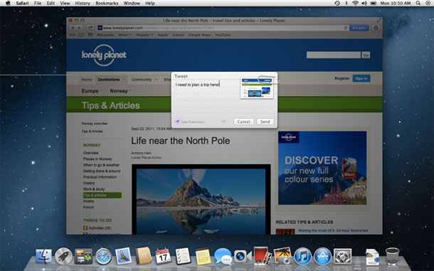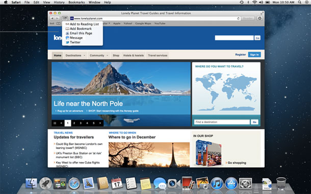 Когда вы видите что-то необычное, вам сразу же хочется поделиться этим с другими. Во многих приложениях OS X 10.8 Mountain Lion, вы найдете кнопку «Share», с помощью которой вы без труда сможете это сделать.