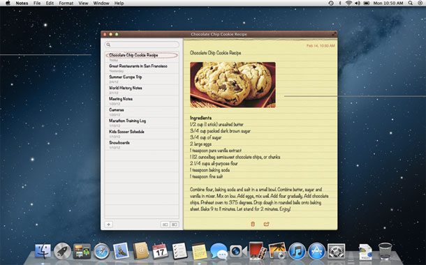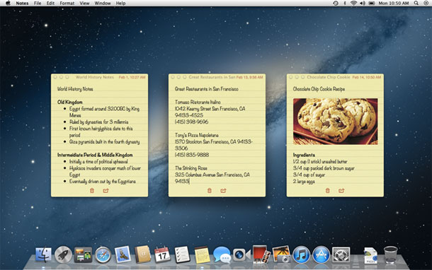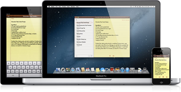 Как видно из названия, приложение Notes в OS X Mountain Lion предназначено для создания заметок на вашем компьютере и оно полностью копирует приложение «Заметки» на ваших iOS устройствах. Правда, в отличие от Notes для iOS, теперь к своим заметкам вы сможете прикреплять фотографии, изображения и различные вложения.