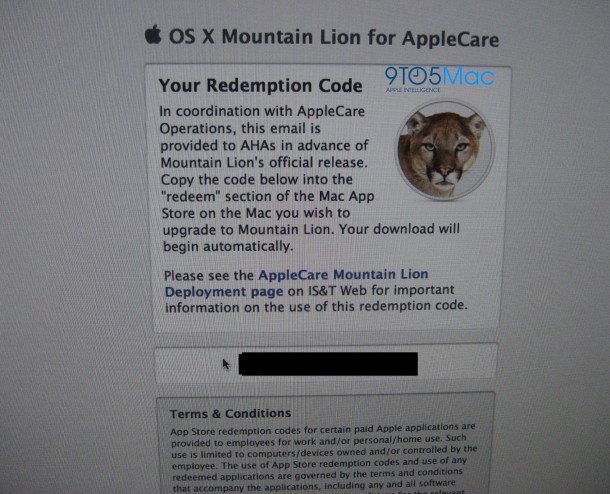 Сайт 9to5Mac также уточняет, что по этим кодам сотрудники AppleCare установили на свои компьютеры версию следующей операционной системы, имеющую номер сборки 12A269 — ту же самую предрелизную версию OS X Mountain Lion Golden Master, которая была выпущена 9 июля.