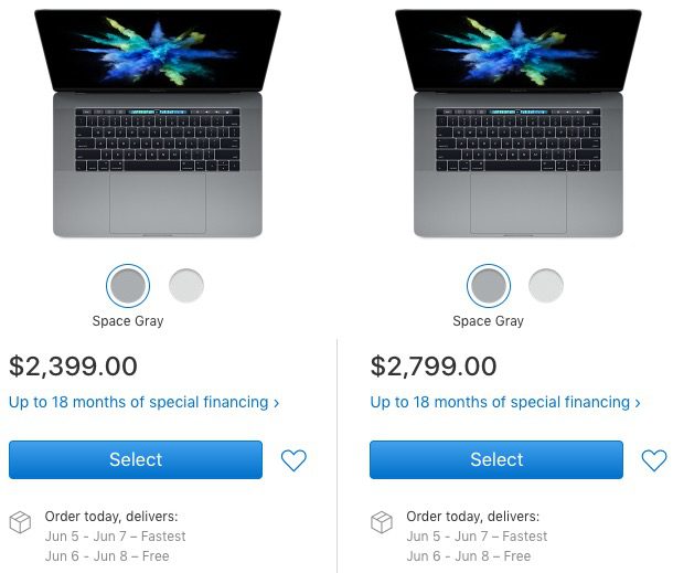 Некоторые аналитики не исключают, что на WWDC 2017 могут быть анонсированы в том числе 10,5-дюймовый iPad Pro, Siri Speaker, а также новые модели MacBook, MacBook Pro и MacBook Air. По мере приближения этого мероприятия в сети появляется всё больше подтверждений того, что 5 июня Apple также покажет аппаратные новинки. Как сообщают журналисты MacRumors, со вчерашнего дня в официальном онлайн-магазине Apple значительно увеличились сроки доставки 15-дюймовых моделей ноутбуков линейки MacBook Pro. По крайней мере при заказе в Соединенных Штатах, Великобритании, Австралии, Канаде, Франции, Германии, Гонконге, Италии, Нидерландах, Сингапуре, Испании и ряде других стран 15-дюймового MacBook Pro любой конфигурации, Apple обещает осуществить доставку только 6-8 июня.