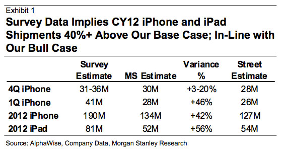 Спрос на iPhone увеличивается. Удивительно, но американские потребители планируют купить больше iPhone в  первом квартале 2012 года, чем в четвёртом квартале года уходящего. По результатам опроса, в следующем квартале продажи iPhone в США могут составить 13 млн. единиц и 41 млн. по всему миру.