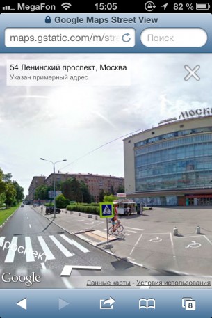 Для того, чтобы получить доступ к Street View со своих iPhone и iPad, их владельцам необходимо зайти на адрес maps.google.com с помощью мобильного браузера Safari, указать нужную улицу и нажать на иконку с «человечком» в правом нижнем углу. После этого вы сможете просматривать панорамные виды выбранной вами улицы.
