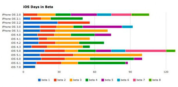 Ответы на эти вопросы попытался дать сайт CultOfMac с помощью составленной его журналистами статистики, в который они рассчитали средний срок релиза новых бета-версий прошивок за все последние годы, начиная с iPhone OS 2.0.