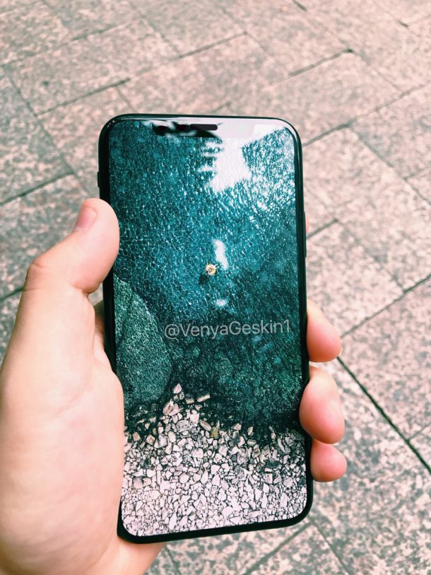 В конце минувшей недели латвийский блогер Вениамин Гескин, ранее уже демонстрировавший макет iPhone 8, опубликовал несколько фотографий и видео, на которых показал как мог бы выглядеть экран блокировки «юбилейного» смартфона Apple. Для этого он использовал тот самый макет 5,8-дюймового iPhone 8 с узкими рамками по краям экрана, а также динамиком, фронтальной камерой и датчиками в верхней части передней панели. К передней панели он приложил напечатанную на обычном листе картинку с эксклюзивными обоями из бета-версии iOS 10.3.3 для 12,9-дюймового iPad Pro, а сверху наклеил обычную защитную пленку для экрана.