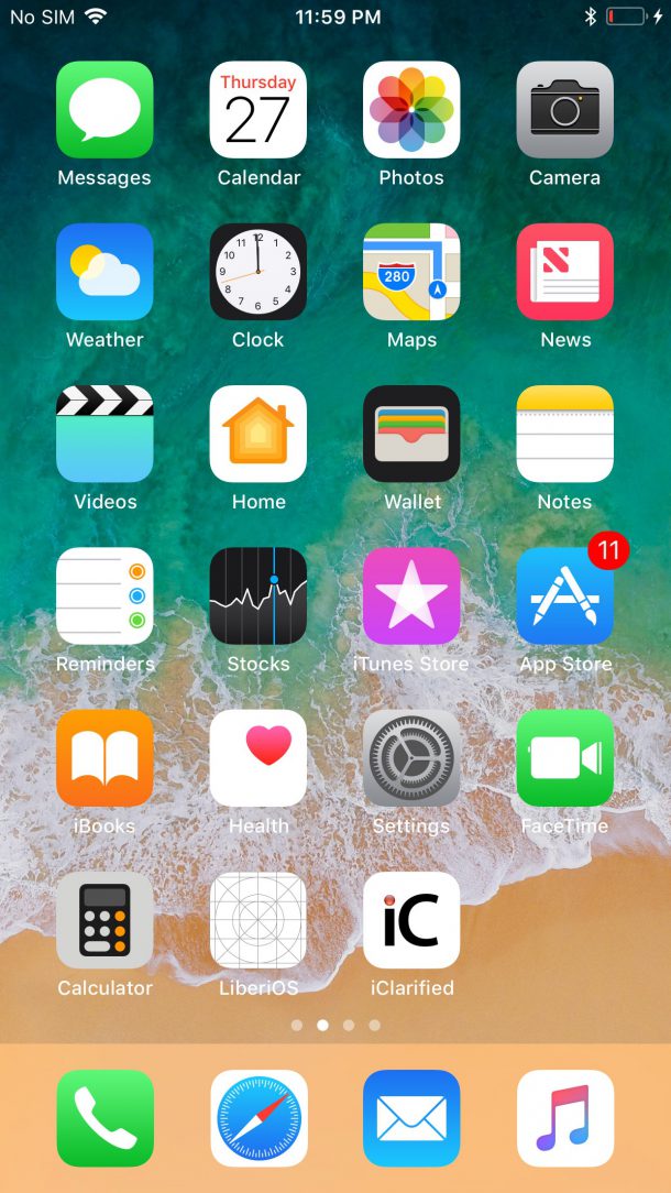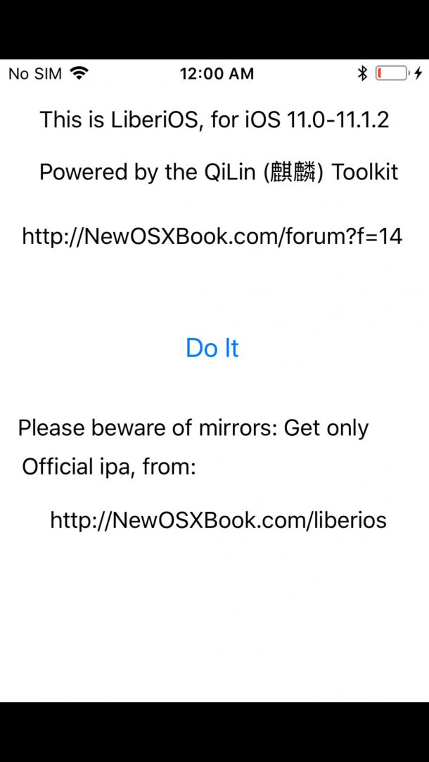 Первый официальный инструмент для джейлбрейка iOS 11 получил название LiberiOS. Он предоставляет возможность сделать джейлбрейк на всех 64-битных моделях iPhone, iPad и iPod touch, в том числе новейших iPhone 8, iPhone 8 Plus и iPhone X, работающих на операционной системе не выше iOS 11.1.2, то есть не поддерживает устройства с iOS 11.2 и iOS 11.2.1. Процесс взлома устройства осуществляется путём установки файла IPA с помощью Cydia Impactor. Если на вашем устройстве установлена одна из совместимых прошивок, вы можете скачать этот файл с официального сайта LiberiOS.