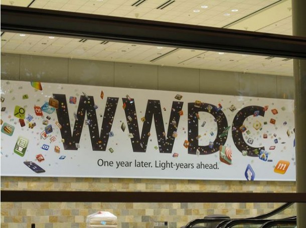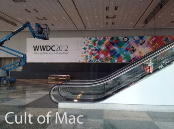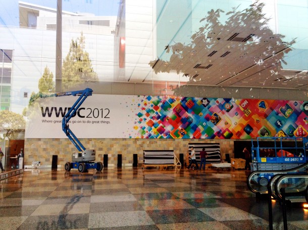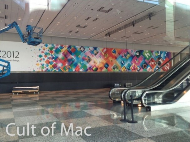 Через несколько дней состоится WWDC 2012 году и вчера утром компания Apple уже начала «наряжать» баннерами Moscone West Center, в котором пройдёт это долгожданная конференция.