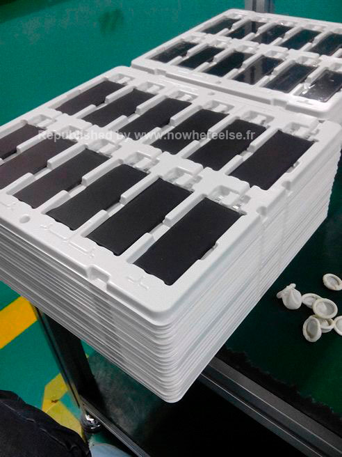 На новой фотографии, опубликованной на этот раз на сайте Nowhereelse.fr, изображены лотки с батареями предназначенными для следующего флагманского iPhone, только что сошедшие с конвейера и даже ещё не оснащённые соответствующим шлейфом. Как видите, на этих батареях даже нет маркировки, поэтому пока что сложно говорить о их мощности и напряжении.