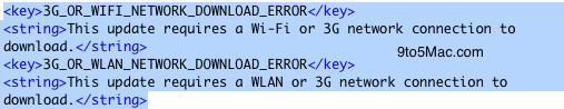 При этом он не сообщил, будут ли эти обновления выполняться только с помощью Wi-Fi или нет, но на скриншотах, показанных на этой конференции, в строке состояния устройства не было видно такого подключения. Это позволило предположить, что ПО устройства может быть обновлено с помощью сетей 3G. Вчера на сайте 9to5Mac был опубликован код из бета-версии будущей прошивки, подтверждающий, что такое обновление действительно будет присутствовать в финальной версии iOS 5.