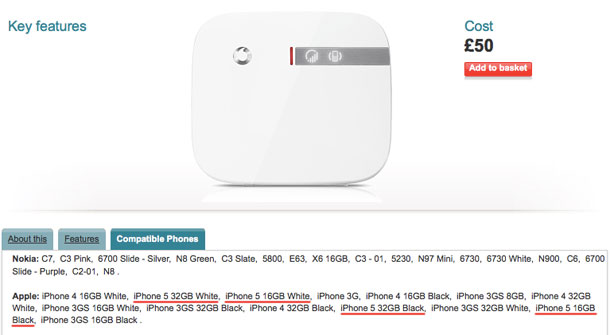 Вчера на официальном сайте оператора Vodafone появился новый продукт под названием «Vodafone Sure Signal», из списка совместимости которого стало известно, что новый iPhone 5 будет доступен двух классических цветах: черном и белом.