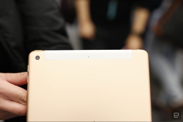 Фронтальная и задняя камеры, 1,2 Мп и 8 Мп, соответственно, отлично работают в условиях низкой освещённости, а также поддерживают запись HD-видео 1080p и съёмку замедленного видео (120 кадров/с). Они очень удобны для сканирования документов, создания фильмов и звонков FaceTime. Как и все его предшественники, новый iPad с экраном 9,7 дюймов оснащён алюминиевым корпусом unibody. Он также имеет поддержку беспроводной связи, Apple SIM, Wi‑Fi (802.11a/b/g/n/ac) два диапазона (2,4 ГГц и 5 ГГц), Bluetooth 4.2 и оснащён рядом датчиков.