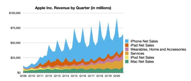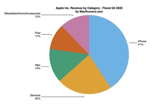 В четверг, 28 октября, глава Apple Тим Кук и её финансовый директор Лука Маэстри объявили финансовые показатели компании за четвёртый финансовый квартал 2020 года, который соответствует третьему календарному кварталу 2020 года. Руководство Apple сообщило о доходе компании за предыдущие три месяца, который составил $64,7 млрд. и чистой квартальной прибыли в размере $12,7 млрд. или $0,73 за акцию, по сравнению с доходом $64,0 млрд. и чистой квартальной прибылью в размере $10,7 млрд. или $0,76 за акцию, за аналогичный квартал прошлого года.