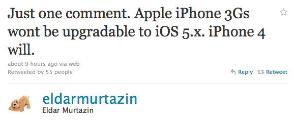 «Лишь один комментарий. Apple iPhone 3GS не будут обновляться до iOS 5.x. iPhone 4 будет.»