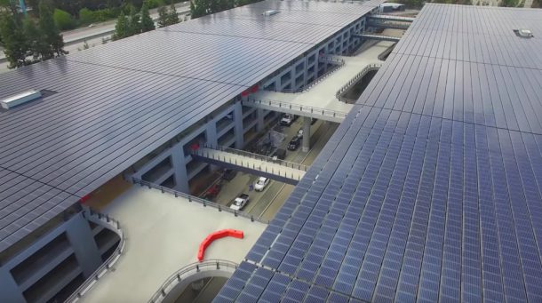 В начале каждого месяца блогер Мэтью Робертс публикует на своём YouTube-канале новые видео, демонстрируя прогресс в постройке будущей штаб-квартиры Apple. Опубликованное им в начале апреля видео тоже подтверждает, что до полного завершения строительства Apple Park остаётся совсем немного времени. По сравнению с началом марта, панелей солнечных батарей на крыше стало значительно больше. Строительство многоуровневой парковки (примерно на 20 тысяч автомобилей) возле кампуса и здания нового R&D-центра Apple тоже близится к завершению.